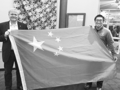 雷希穎與諾貝爾獎得主施密特(左)和中國國旗合影