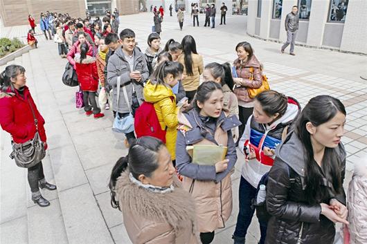 (報考播音主持專業的考生在招考點前排起長隊 通訊員竇岸俊攝)