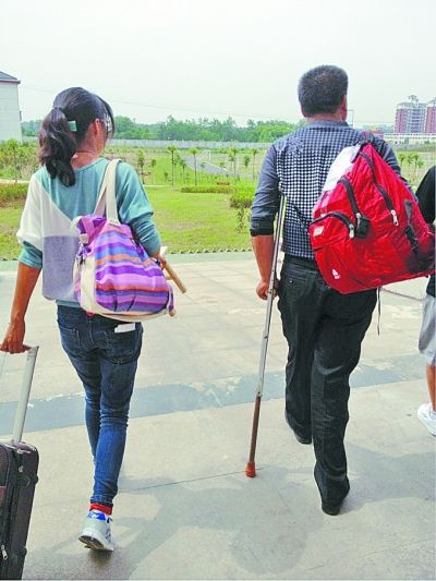 這父女倆從老家山東菏澤來,女兒名叫吳爽爽,是湖大商學(xué)院旅游管理專業(yè)大一新生。這次開學(xué),她是在爸爸陪同下來的。爸爸腿腳不方便,行走時(shí)必須借助一根拐杖,女兒跟著身后,兩人大包小包地往報(bào)名點(diǎn)走著,爸爸走不快,女兒時(shí)不時(shí)地放慢腳步。記者見到他們時(shí),父女倆正邊走邊看,有說有笑。