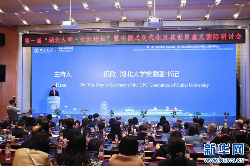 第一屆“湖北大學·長江論壇”暨中國式現代化及其世界意義國際研討會19日在湖北大學召開,來自國內外120余位嘉賓和代表參會。會議聚焦“中國式現代化及其世界意義”主題,以線下線上相結合方式,交流思想、啟迪智慧,分享成果、凝聚共識。湖北大學黨委副書記祝欣主持開幕式。