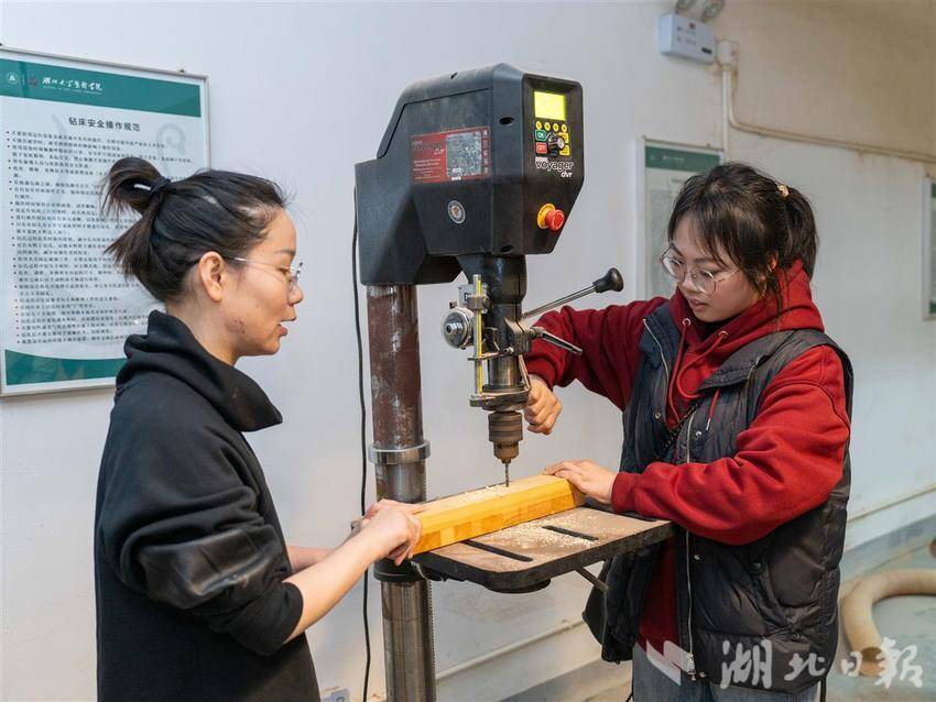 這門公選課程面向本科生開設,包含理論與實踐兩個部分,共計32個學時。在來自該校藝術與設計學院的授課教師胡冰潔帶領下,學生們系統了解木作知識和技能,每人動手制作完成一件木工作品。