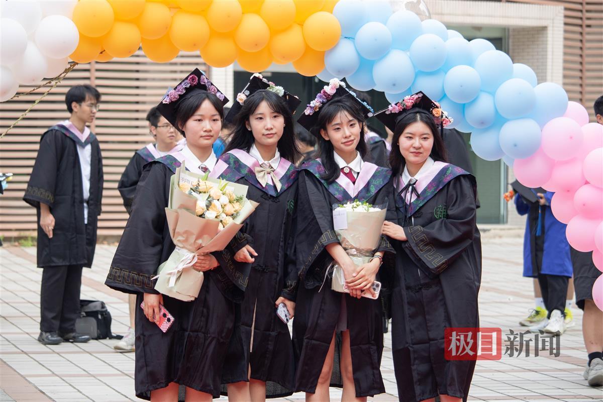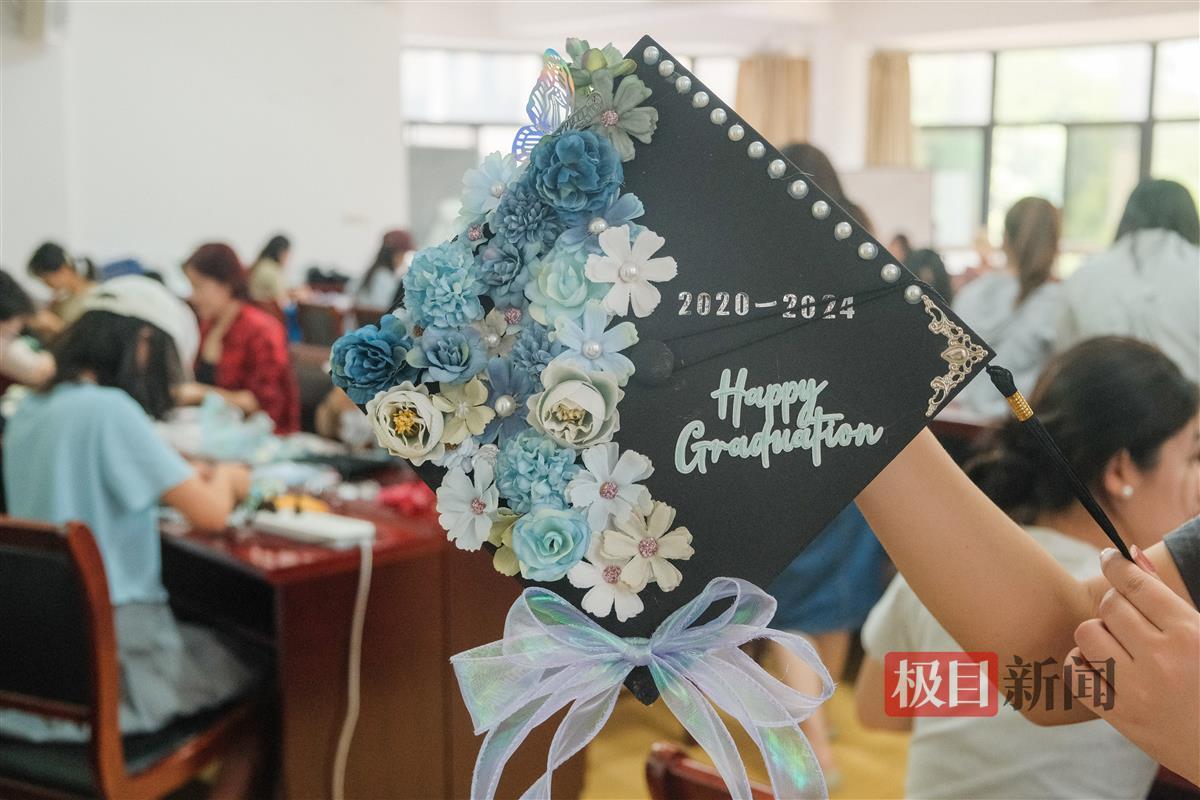 “我們會把傳統延續下去,希望每個從湖大、從新聞傳播學院畢業的學子以后的路也都充滿溫暖。”新聞傳播學院相關負責人介紹說,作為新聞傳播學院的系列活動,畢業典禮已持續近十年,每一年都各不相同,今年以花為題,贈送150余頂簪花學士帽,盼望著畢業生們“一路生花”。
