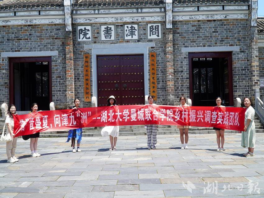 “這座古老的書院擁有兩千多年的歷史,是中國最古老的‘大學’之一。因《論語》中孔子使‘子路問津’的典故而得名……”7月7日,湖北大學曼城聯合學院鄉村振興調查實踐團隊第六站走進新洲問津書院,8名大學生利用專業所學為問津書院“代言”。