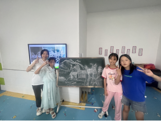 與孩子們一起創作繪畫《我的家鄉》7月以來,湖北大學楚才學院“赴鄂西北開展暑期支教與文化傳承”實踐團隊來到丹江口市開展暑期社會實踐活動,感受當地“民歌文化、水利文化、紅色文化”,通過開展“五育”課堂,以“文化+教育”模式豐富農村留守兒童假期生活。