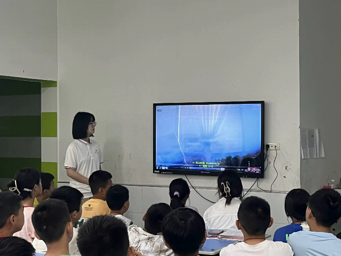 在詩詞課上,團隊成員通過“看圖猜古詩”的游戲引入主題,逐步深入地介紹了多首經典詩詞。從陶淵明《飲酒》中的“見南山”之寧靜,到李白《玉階怨》中的別樣情懷,再到李商隱《夜雨寄北》中的西窗剪燭……團隊成員肖雅甜說:“古典詩詞是我國優秀的傳統文化,學習和誦讀詩詞能夠幫助我們接觸更美好的世界,實現詩意的生活。”